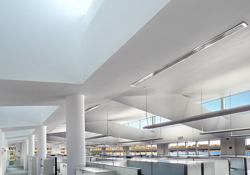 The Bay Education Center embodies Save The Bay's mission to act as stewards of the Narragansett Bay and its watershed. The building reinforces the linear aspect of the site by imbedding/folding into the landform. The sequence of arrival opens to and closes the view of the Bay to the visitor culminating in a dramatic South facing entry sequence to the lobby with a panoramic view over the Bay that is fully shaded from direct sun. The program is divided into administrative program to the east (morning activities) and educational programs to the west (afternoon activities). Subsequently, South-facing clerestory windows and skylights allow for deep daylighting to penetrate all of the occupied spaces in the building while a 7,000 sf North-facing green roof absorbs stormwater and insulates the envelop.